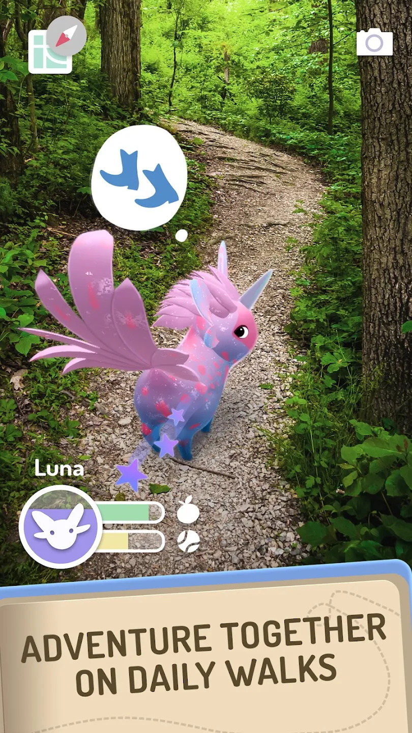 2. 环境探索:游戏鼓励玩家走出家门,探索周边的自然环境。通过摄像头识别水、草丛、鲜花、树木等环境,玩家可以控制AR宠物与环境进行互动,如让宠物坐在桌子上、对着墙壁扔球等。