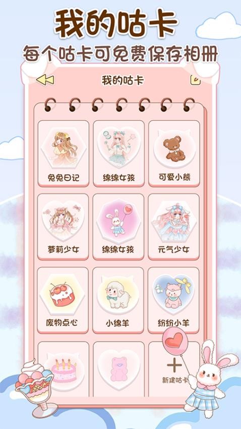 1. 贴纸素材:咕卡APP内包含海量的可爱贴纸素材,涵盖了各种风格和主题,满足用户的不同需求。