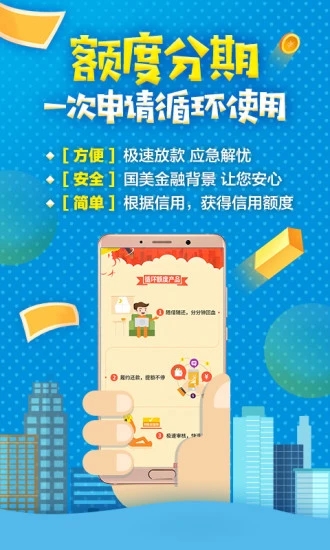 国美易卡app是一款小额贷款软件,依托先进的大数据及风控体系,实时生成信用评级,并以信用评级为依据,为社会自雇及受薪人士,提供简单、快捷的服务。
