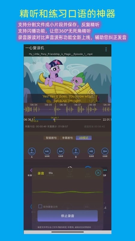 3. 变速与音调调整:提供多种播放速度选择和音调调节,适应不同学习需求。