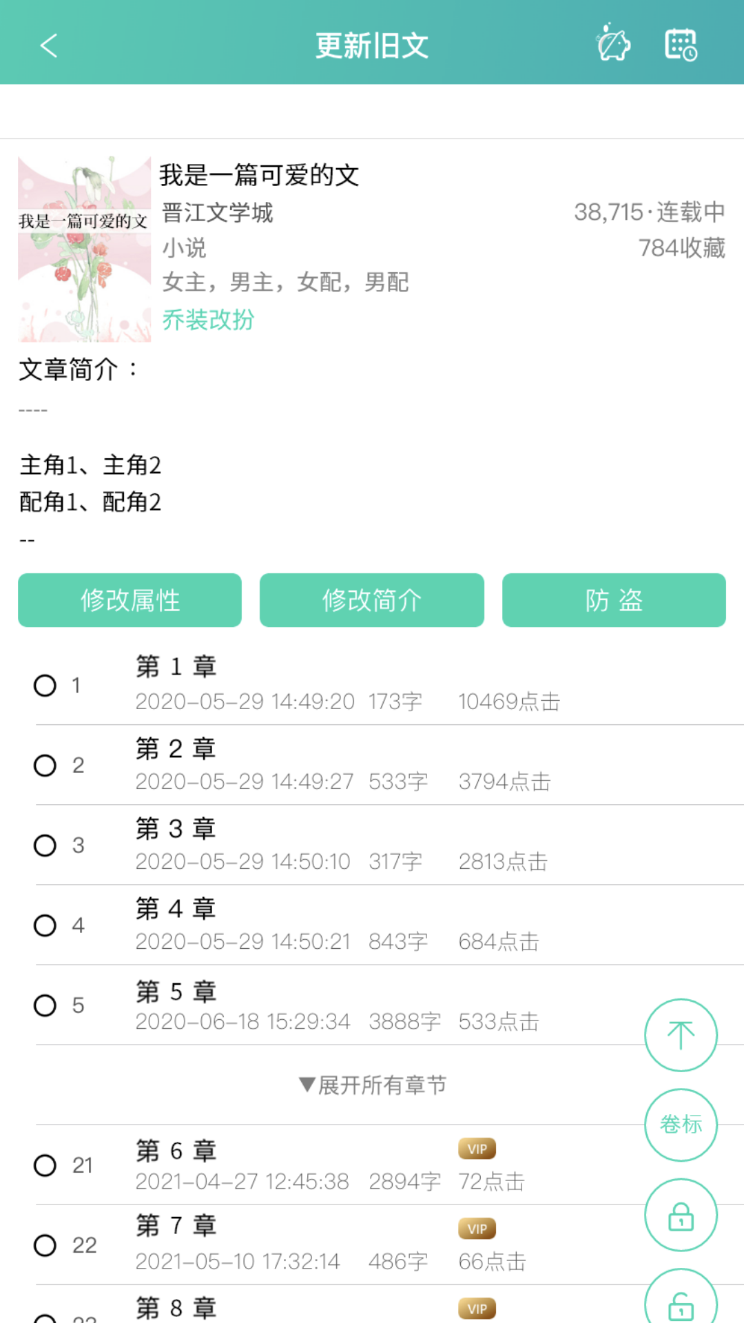 5. 发布章节:完成章节撰写后,点击“发布”按钮,将章节发布至晋江文学城。