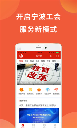 甬工惠app旨在通过数字化手段,实现工会工作流程再造、规则重塑和功能升级,打造新时代工会服务职工的一体化平台。它整合了工会内部的各种服务资源,为职工提供了一站式的服务体验。