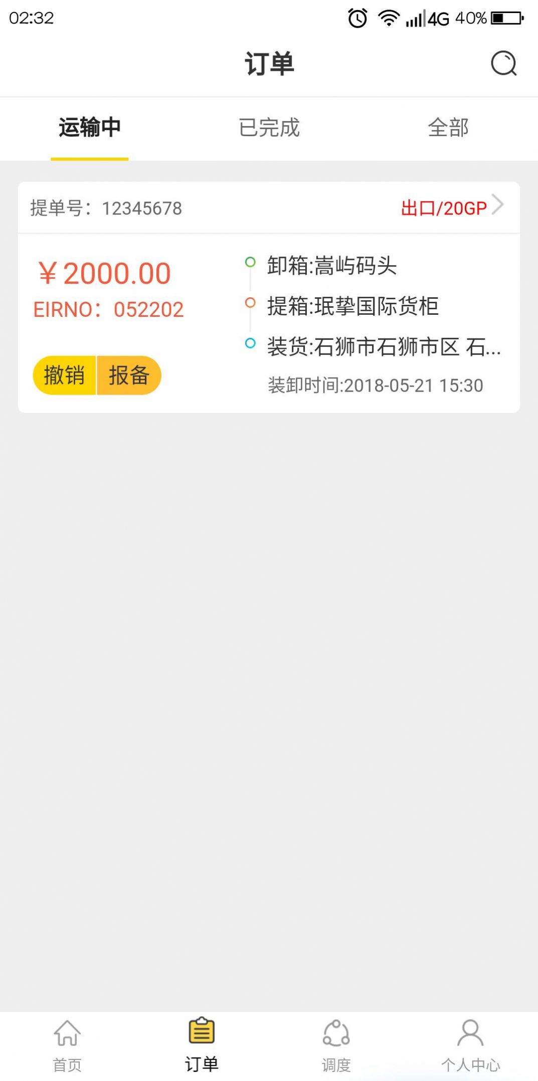 3. 查看订单:登录后,进入订单页面,查看各种订单信息,包括货物类型、运输地点、运费等。