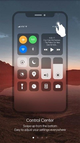2. 控制中心:完美复刻iPhoneX的控制中心,包括音量调节、屏幕亮度调节、网络连接、飞行模式等快捷开关。