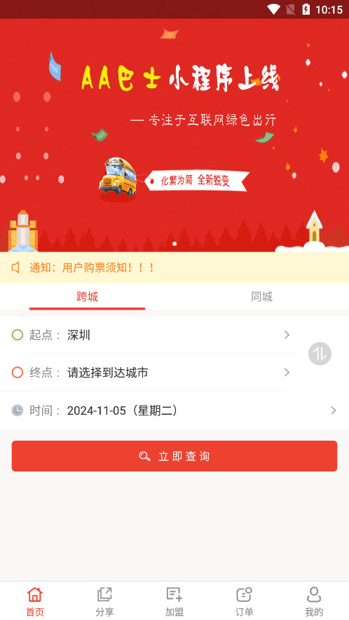 1. 查询班次:在app首页输入出发地、目的地及出行日期,即可快速查询巴士班次信息。