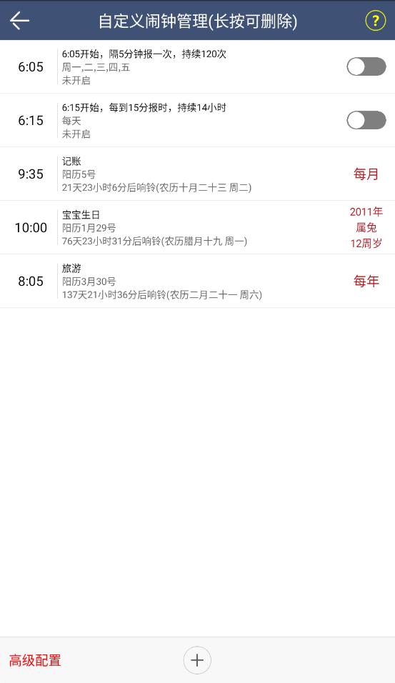 4. 闹钟记录查看:提供闹钟记录查看功能,方便用户随时了解已设置和已触发的闹钟情况。