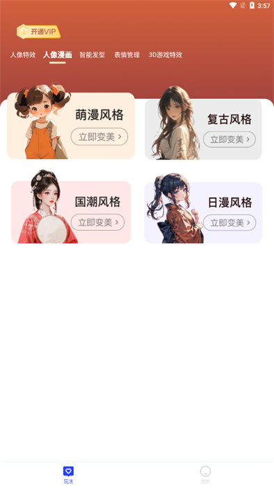 3. 趣味功能多样:除了基础的美颜和滤镜功能外,还提供了人像漫画、智能发型、3D特效等趣味功能,增加拍照的趣味性和创意性。