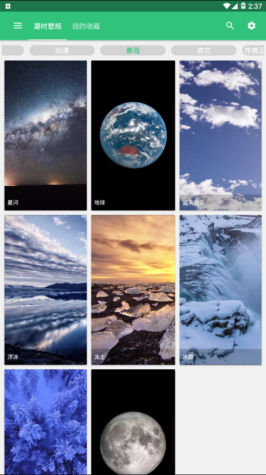 凝时壁纸集成了海量高清壁纸资源,涵盖了自然风光、城市夜景、动漫人物、明星偶像等多个类别。用户可以根据自己的喜好和需求,轻松选择并设置个性化的手机壁纸。同时,软件支持自动更换壁纸功能,可以根据用户设定的时间间隔自动切换壁纸,让手机界面时刻保持新鲜感。