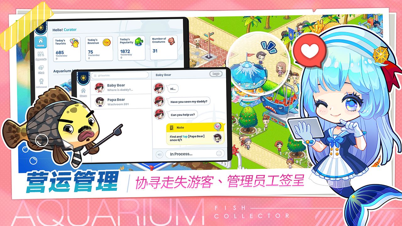 《水族馆物语人鱼世界》是一款融合了经营、冒险与浪漫幻想的休闲游戏。在这个游戏中,玩家将扮演一位水族馆的馆长,同时也是一位能够与神秘人鱼公主互动的幸运儿。你需要经营并扩展自己的水族馆,探索深海的秘密,与人鱼公主共同编织一段段美丽的故事。