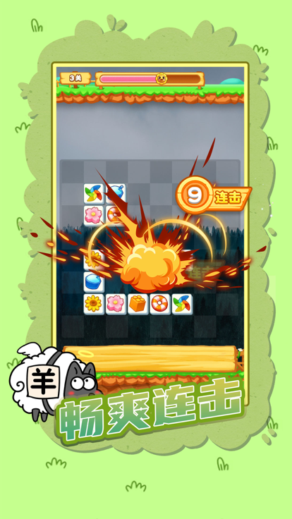 1. 消除挑战:玩家需要通过消除屏幕上的方块,使下方的羊图案逐渐显露出来。每个关卡都有特定的消除目标和规则。