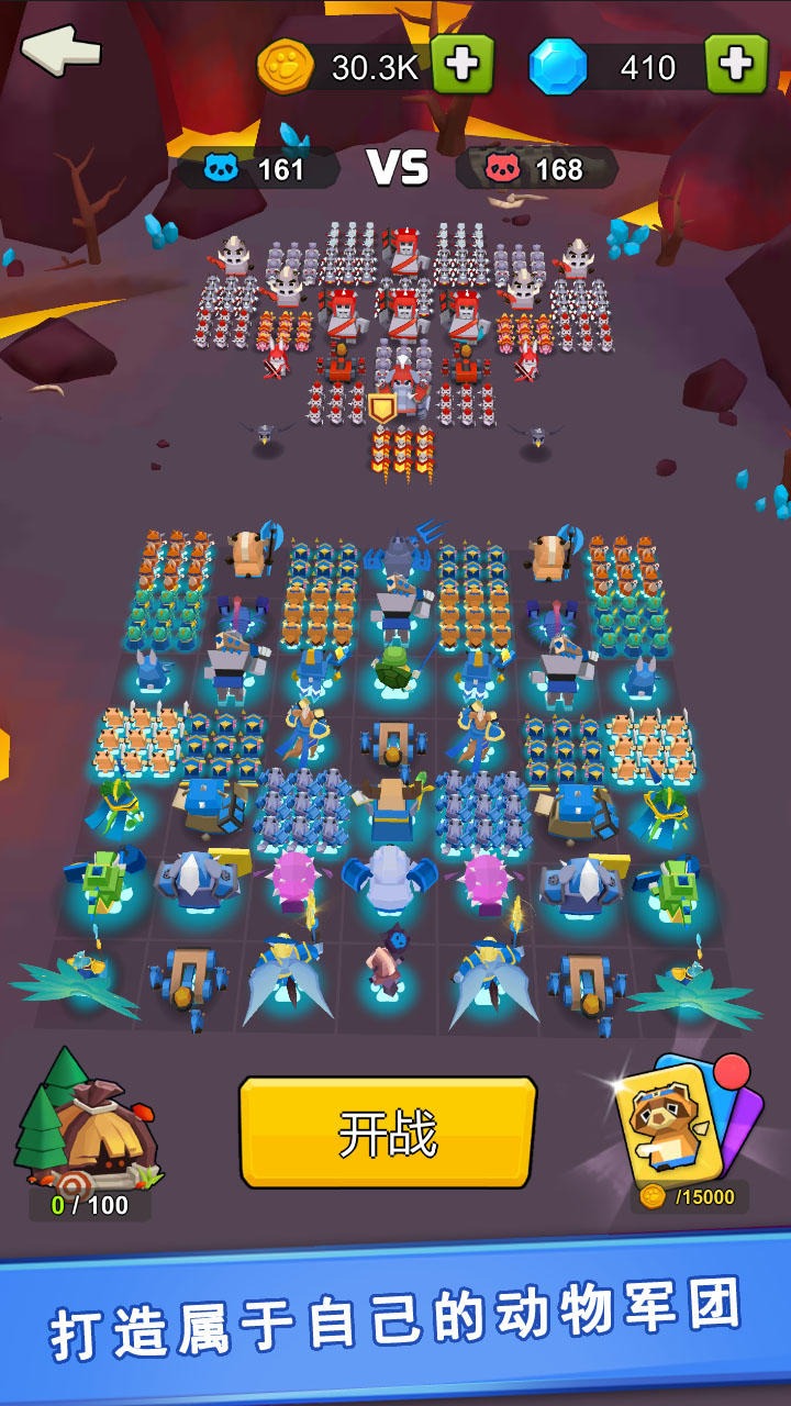 1. 军团组建:玩家可以通过招募、合成与升级,收集并培养不同种类的动物战士,组建属于自己的独特军团。