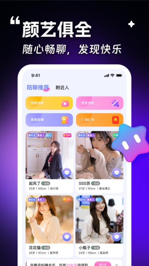 趣约她通过智能匹配算法,根据用户的兴趣、爱好、地理位置等多维度信息,为用户推荐合适的约会对象。用户可以在平台上浏览其他用户的个人资料,发起聊天邀请,安排线下约会等活动。同时,软件还提供了丰富的社交功能和互动游戏,增加用户之间的趣味性和互动性。