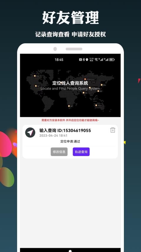 4. 紧急求助功能:在紧急情况下,用户可以通过软件向目标手机发送求助信息,获取即时帮助。