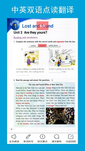 1. 点读功能:用户可以通过点击屏幕上的单词或句子,听到对应的标准发音,方便随时查阅和复习。