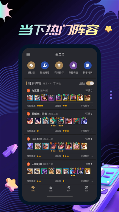 1. 阵容推荐:根据当前版本及玩家偏好,智能推荐最优阵容搭配,助力玩家快速上分。