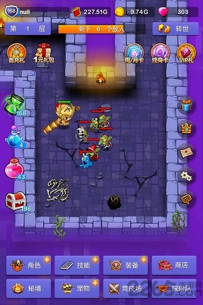 2. 自动战斗与探索:游戏采用自动战斗的方式,玩家只需点击屏幕即可控制角色进行攻击与移动。清完一层的怪物后,角色会自动进入下一层,挑战更强大的敌人。