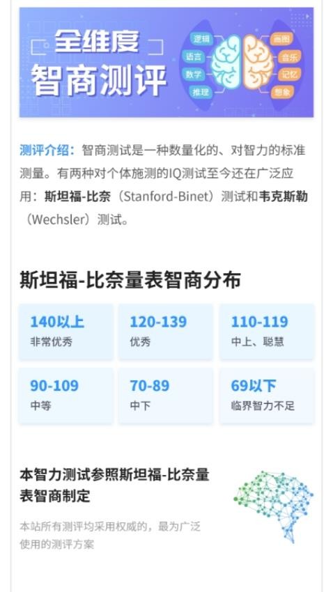 1. 精准评估:采用科学的评估体系与算法,为用户提供精准、可靠的智力测试结果。