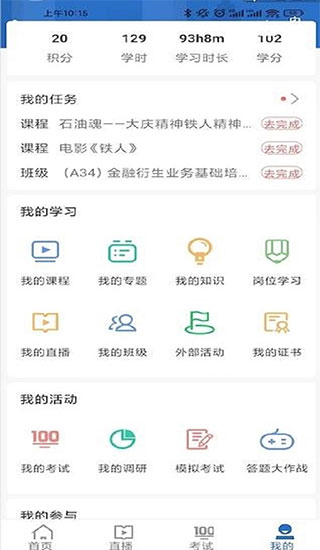 5. 考试评估:在“我的”页面查询当前学习任务和进度,参加在线考试或评估活动。