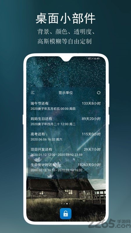 1. 记录日子:支持记录纪念日、倒数日、生命倒计时、高考倒计时等重要日期,帮助用户不再忘记任何一个重要时刻。