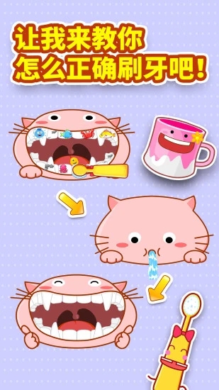 2. 学习刷牙:跟随动画和视频的指导,学习正确的刷牙步骤和方法。