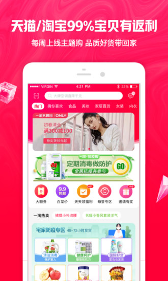 2. 返利商城:涵盖众多商品类别,用户通过一淘下单可获得相应返利,省钱又省心。