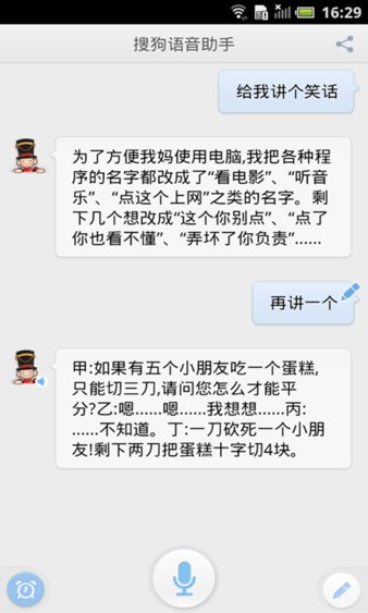 4. 聊天互动:在无聊的时候,可以与搜狗语音助手进行聊天互动,让它讲笑话、背古诗等。