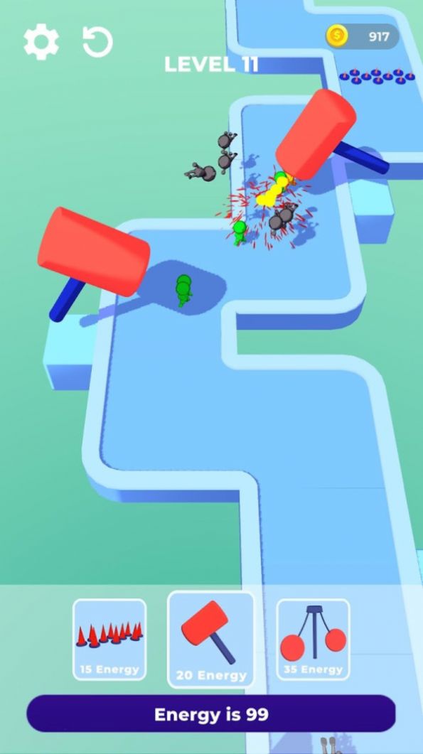 3. 操作与消除:通过点击、拖拽或其他指定操作方式,玩家可以触发场景中的陷阱、机关或使用道具来消灭火柴人。