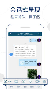 1. 邮件收发功能:支持任何邮箱直接登录,极速收发来往信件。email以气泡对话形式实现语音、视频、在线涂鸦、文件离线预览等功能。