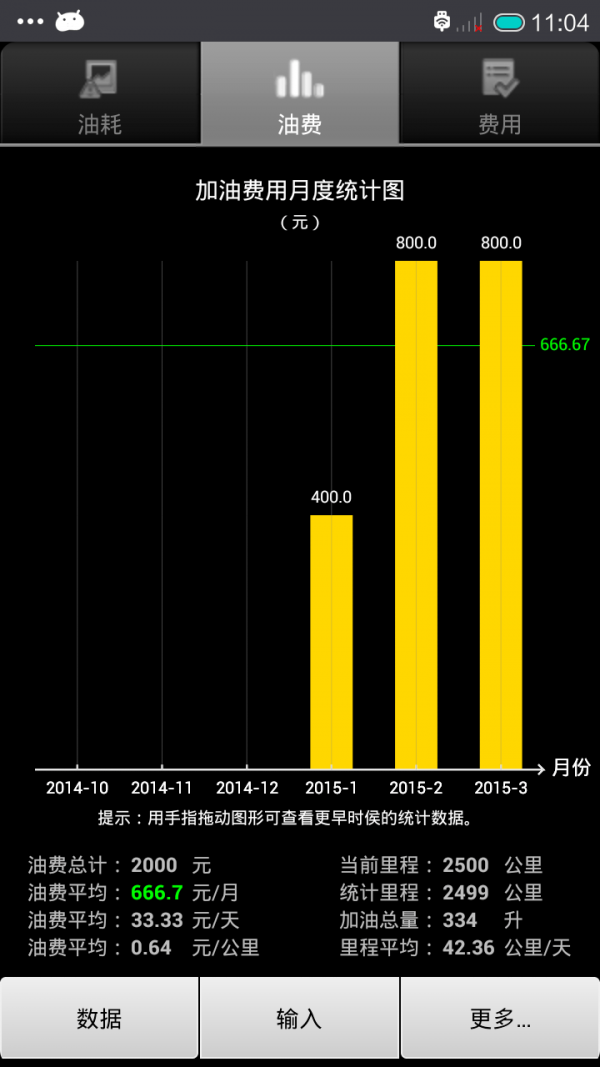2. 费用管理:通过油耗数据分析,帮助用户合理规划加油时间和费用,降低养车成本。