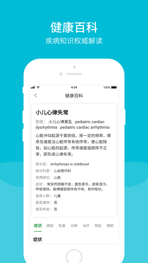 5. 疾病百科:内置疾病百科板块,涵盖众多常见疾病的症状、病因、诊断方法、治疗方法及预防措施等内容,为患者提供健康医疗的科普服务。