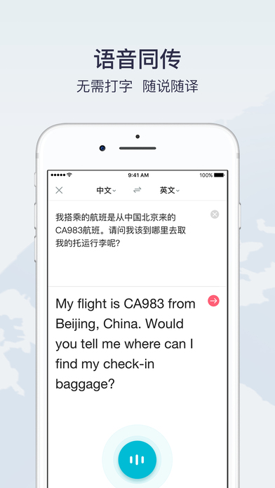 2. 语音翻译:长按语音按钮说话,软件会自动识别并翻译成目标语言,同时朗读出来。