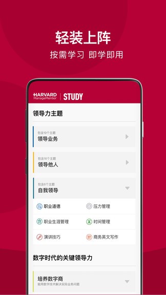 哈佛管理导师app是一款由北京哈商教育科技有限公司倾力打造的企业管理培训软件,专为职场人士设计,旨在提高个人职业素养和业务能力。它融合了哈佛商学院的先进理念和方法论,基于“领导力框架”(Leadership Capabilities Framework)体系,汇集了管理学和领导力领域的前沿研究和实践经验。