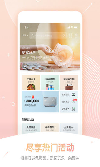 4. 优惠活动:推送民生信用卡最新优惠活动信息,涵盖餐饮、购物、旅行等多个领域。