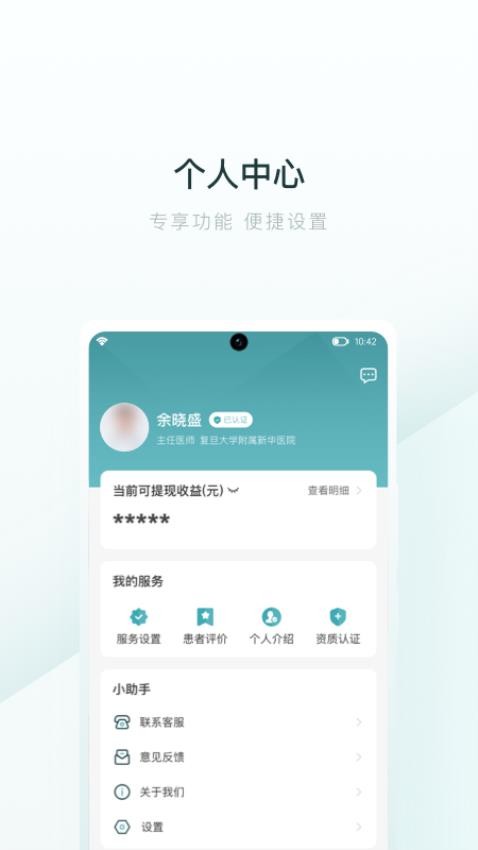 5. 服务设置:在服务设置中心,医生可以对各项医疗服务功能进行设置操作,如设置接诊时间、问诊费用等。