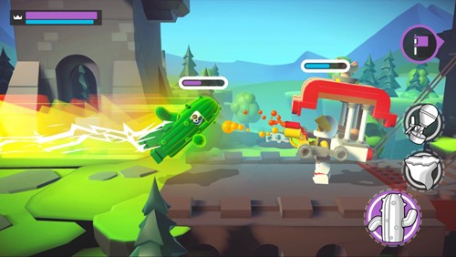 2. 积木收集与建造:收集散落在竞技场中的积木,用于升级角色或建造防御工事,增强自己的战斗力。