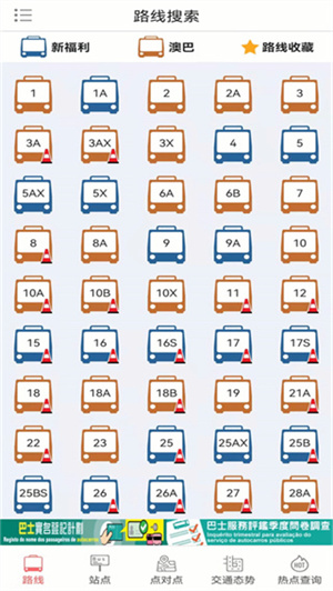 4. 查询线路:在首页输入公交线路号或站点名,查询相关信息。