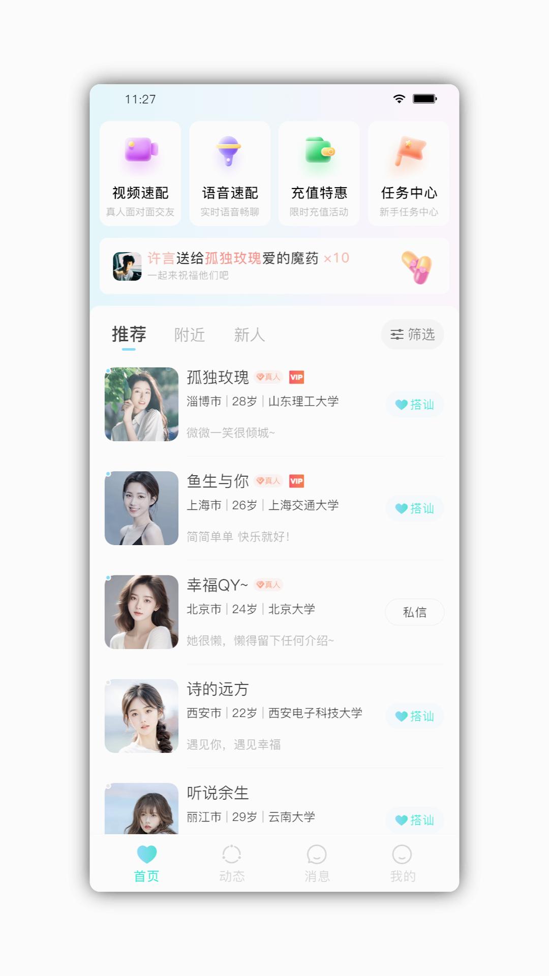 4. 浏览匹配:在首页浏览系统为您匹配的朋友,点击感兴趣的用户进入其主页。