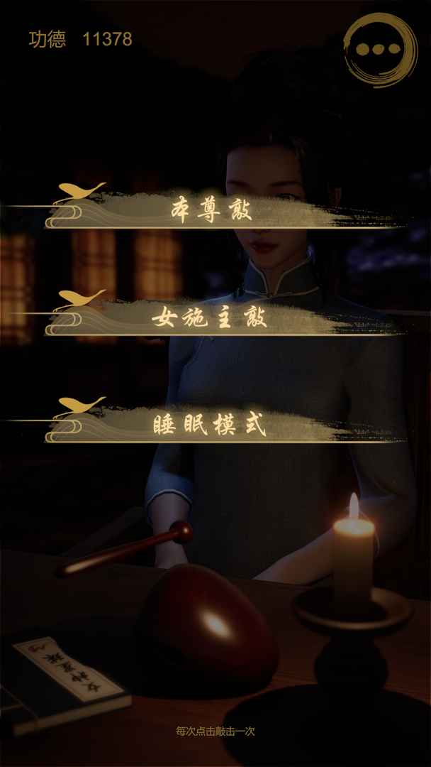 3. 开始冥想:点击屏幕开始敲击木鱼,跟随节奏进入冥想状态。