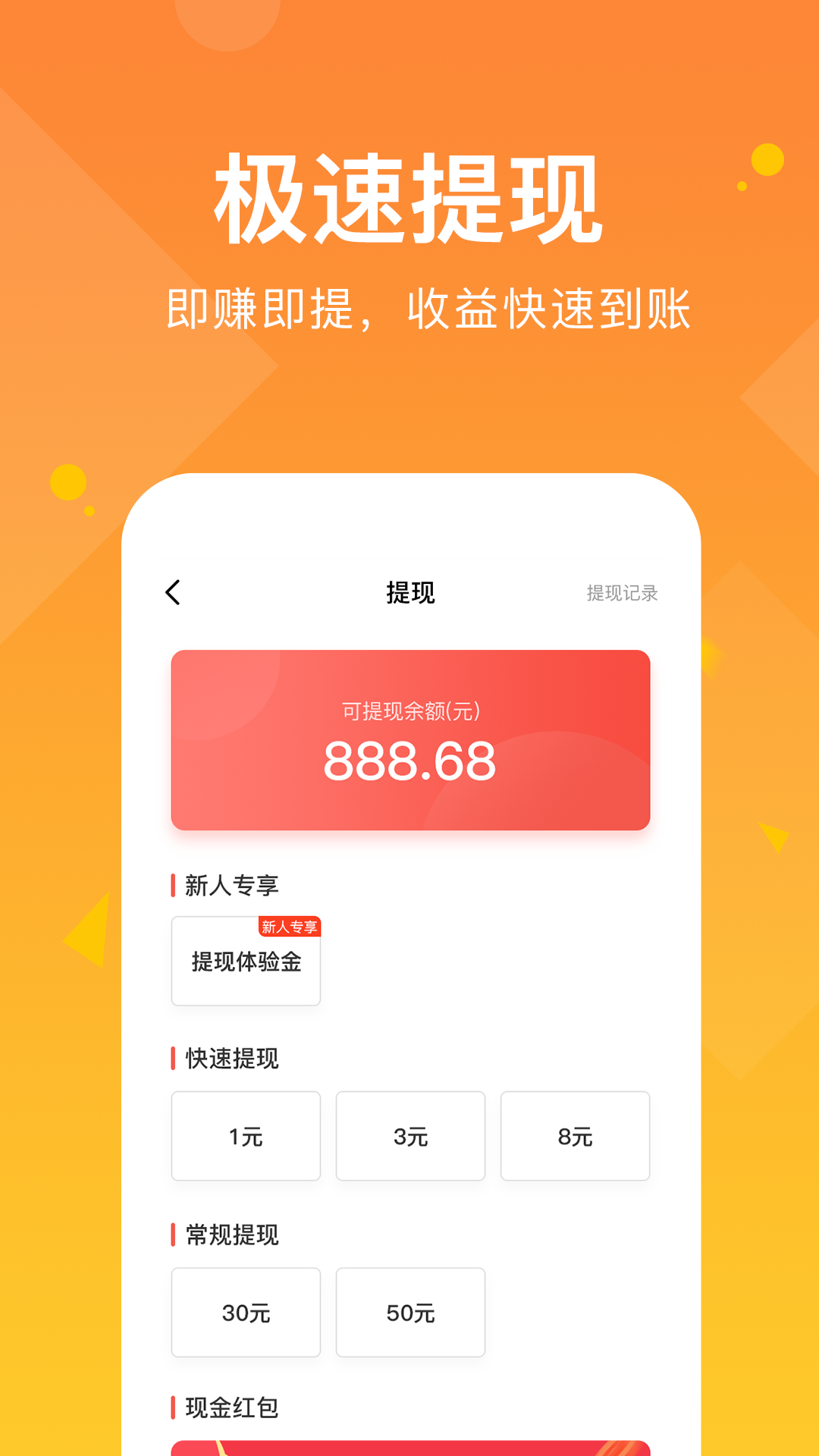 2.打卡挑战,赢取金币,急速提现,分秒到账