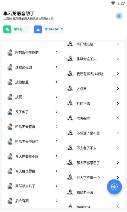 李云龙语音助手安卓手机版以其独特的语音包和丰富的功能,为用户带来了全新的语音交互体验。无论是追求效率的工作人群,还是注重娱乐体验的用户,都能在这款软件中找到满足自己需求的功能。同时,其高效的语音识别能力和个性化的设置选项,也让这款软件在众多语音助手中脱颖而出,成为用户生活中不可或缺的智能助手。