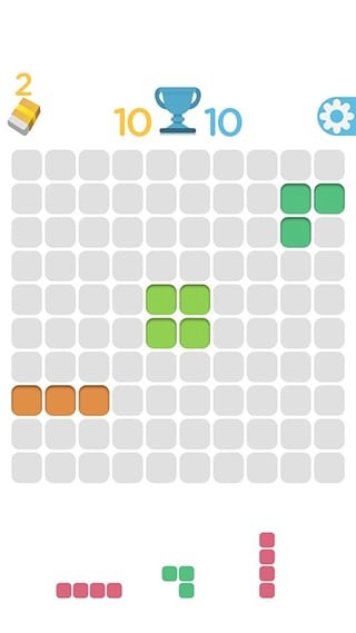 3. 拖拽方块:在主界面下方会出现不同形状的方块,玩家需要观察网格中的空缺,通过手指拖拽将方块放入合适的位置。