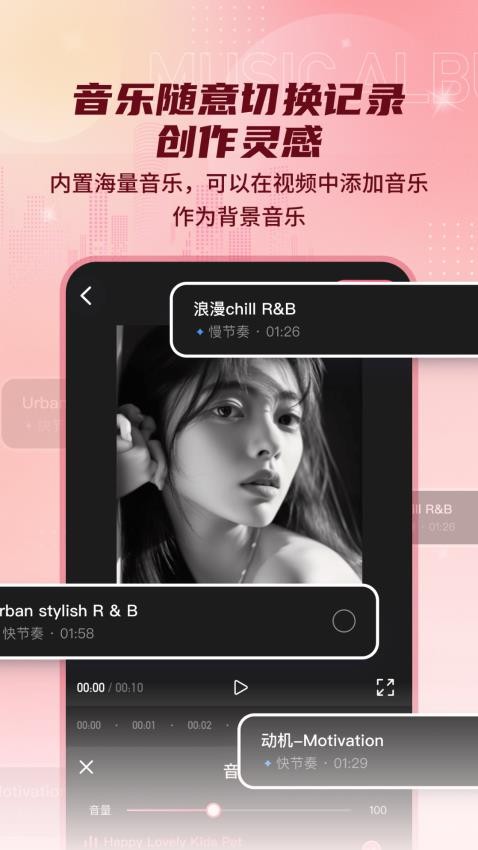 1. 个性化音乐相册:用户可以根据自己的喜好和照片主题,自由选择音乐库中的曲目或上传个人音乐,为照片添加独特的背景音乐。