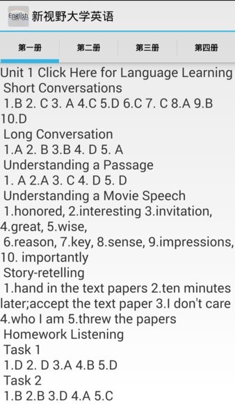 新视野大学英语APP凭借其丰富的学习资源、强大的功能和个性化的学习体验,成为了众多英语学习者的首选。无论你是大学生还是英语爱好者,这款APP都能帮助你有效提升英语水平。快来下载体验吧!