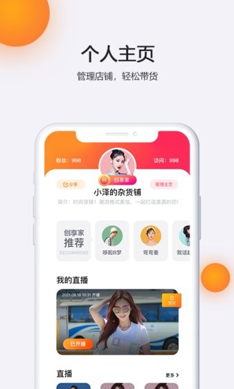 5. 店铺管理:提供店铺管理工具,帮助电商带货职业者打造个人IP,实现一站式管理个人线上店铺。