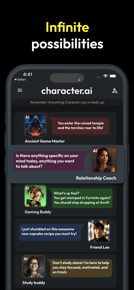 4. 创作辅助:对于创作者、设计师、研究人员等专业人士,Character AI可作为创新思考的催化剂。通过与AI对话,用户可以探讨新的设计理念、头脑风暴商业策略、探究学术问题等。