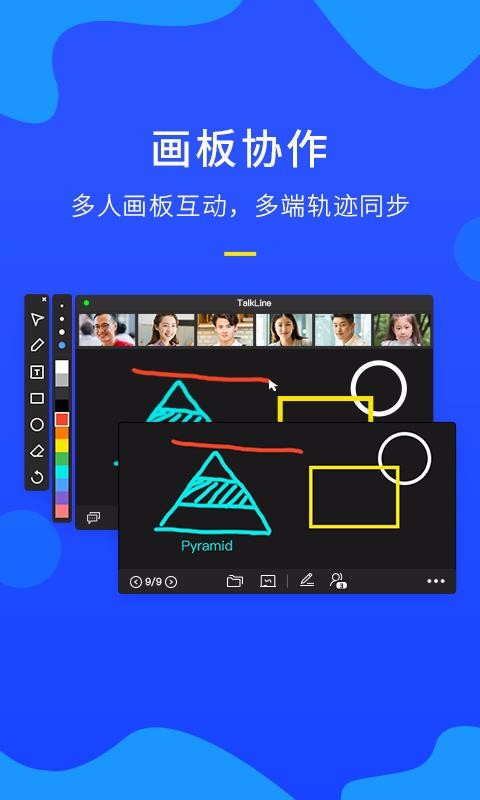 拥有多人画板,多端用户同时操作一个屏幕画板;