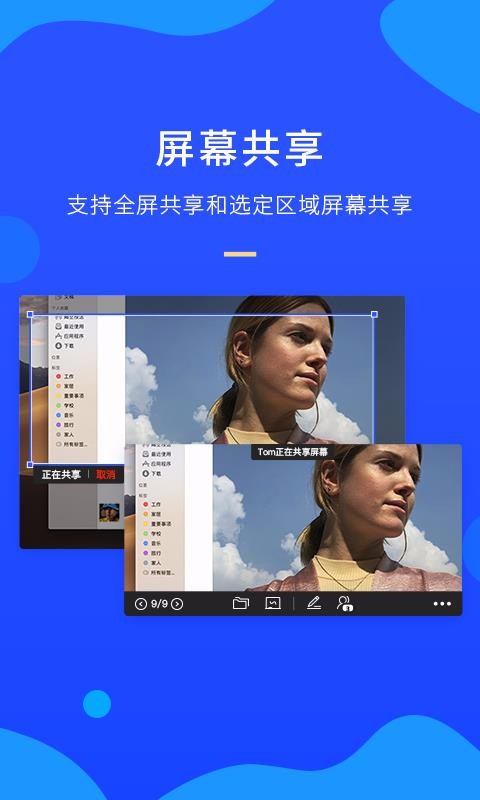 支持屏幕共享功能,还能自由框选区域进行屏幕共享;