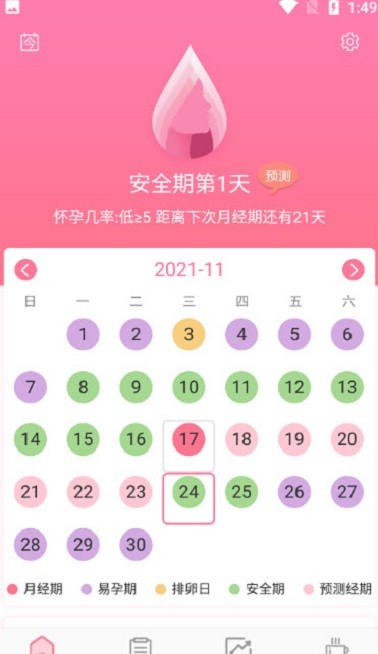 1. 月经周期跟踪:自动记录并预测下一次月经日期,以及排卵期和安全期。