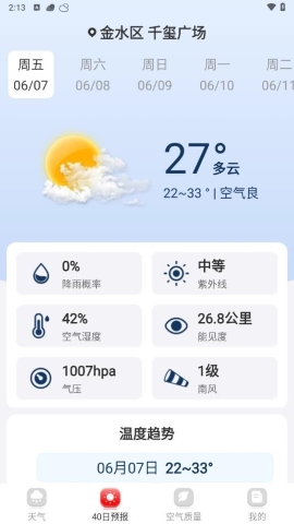 2. 多日预报:支持未来7-15天的天气预报,为用户的长远计划提供参考。