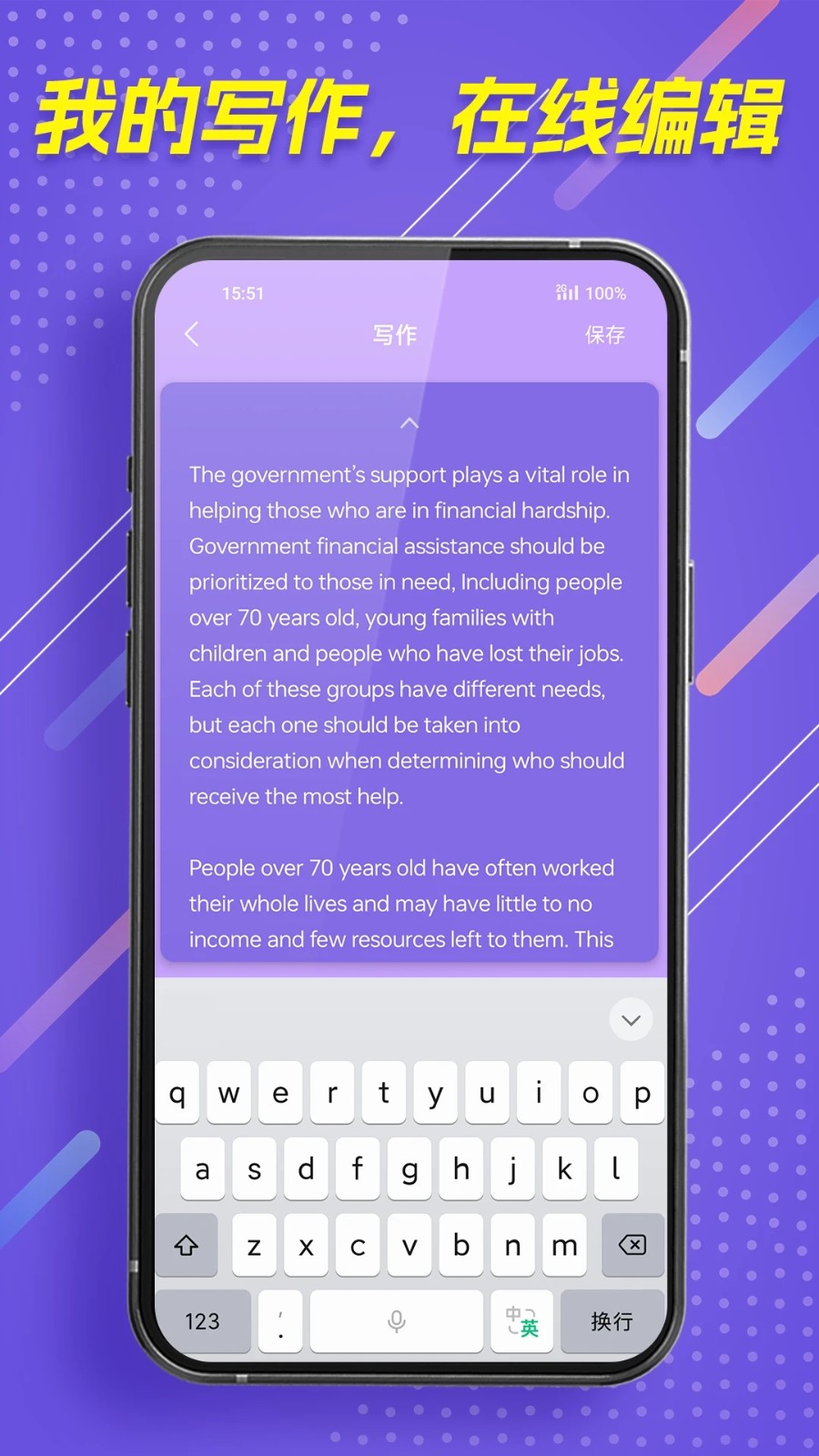 4. 智能批改:提交作文后,系统将自动进行批改,用户可在“批改报告”中查看详细反馈,并根据建议进行修改。